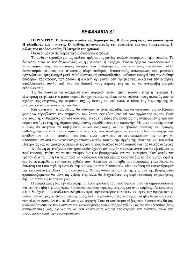 Πιὸ κάτω βρίσκονται τὸ τέταρτο καὶ τὸ πέμπτο κεφάλαιο τῶν Πρωτοκόλλων τῆς Σιῶν. Ὅλοι οἱ Ἕλληνες πρέπει νὰ γνωρίζουμε αὐτὲς τὶς ἀθλιότητες.