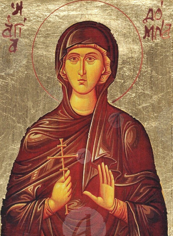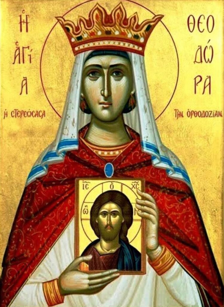 «Μὲ τὴν ἀπόλυτη ὑποταγή τους στοὺς πνευματικοὺς κανόνες τοῦ Θεοῦ, οἱ ἅγιοι ἀποκτοῦν ΚΑΡΔΙΑ ΚΑΘΑΡΗ, “ΑΝΑΛΑΦΡΗ”, ποὺ ἔχει χάσει τὸ “βάρος” τῆς σαρκικότητας τοῦ “παλαιοῦ ἀνθρώπου”! Δόμνα, ὅταν ὁ ἄνθρωπος γίνεται περισσότερο ΠΝΕΥΜΑΤΙΚΟΣ, δηλαδὴ ἐξομολογεῖται τὶς ἁμαρτίες του καὶ ΕΠΙΣΤΡΕΦΕΙ ΠΡΟΣ ΤΟΝ ΠΑΡΑΔΕΙΣΟ, πλησιάζει τόσο κοντὰ στὸν Χριστό, ποὺ Ἐκεῖνος τοῦ δίνει ΑΝΩΤΕΡΕΣ ΔΥΝΑΜΕΙΣ! Δὲν εἶναι ὑπέροχο, νὰ ἀνορθώνει ὁ ἄνθρωπος τὸ “κατ’ εἰκόνα”, καὶ νὰ ξαναγίνεται ΟΥΡΑΝΟΠΟΛΙΤΗΣ; Ἄς μὴν ξεχνᾶμε, πὼς ὁ ἄνθρωπος φτιάχτηκε “βραχὺ τι παρ’ ἀγγέλων ἠλαττωμένος”, δηλαδὴ δημιουργήθηκε κάτι λιγότερο ἀπὸ τοὺς ἀγγέλους! Γι’ αὐτὸ καὶ ἡ βασιλεία τῶν οὐρανῶν, σκλαβώνει τὶς καρδιές μας, γιὰ νὰ τὶς ἐλευθερώσει ἀπὸ τὴν φθορὰ τῆς ἁμαρτίας! Ὁ λόγος ποὺ ἔχουμε τὴν ἐλευθερία, εἶναι γιὰ νὰ ποθήσουμε τὴν ἁγιότητα, καὶ νὰ ἀγωνιστοῦμε γιὰ νὰ γίνουμε ἅγιοι. Εἶναι πολὺ σημαντικὸ γιὰ ἐμένα, ποὺ καλλιτεχνῶ τὴν μορφὴ τῆς ἁγίας Θεοδώρας τῆς Αὐγούστας! Θέλω νὰ τὴν τιμήσω γιὰ τὴν εὐεργεσία της, ποὺ ἔπαψε τοὺς θεομάχους πολιτικοὺς καὶ κληρικούς, καὶ τερμάτισε τοὺς διωγμοὺς τῶν εὐσεβῶν, μὲ τὴν ἐλπίδα νὰ μᾶς βοηθήσει καὶ τὼρα, στὸν ἀγῶνα μας κατὰ τῶν ἀνίερων αἱρετικῶν. Τὴν παρακαλάω νὰ μᾶς βοηθήσει μὲ τὸν σημερινὸ Πατριάρχη, ὁ ὁποῖος ἐπινοεῖ κάθε τρόπο γιὰ νὰ ΝΟΘΕΥΕΙ καὶ νὰ ΔΙΑΣΤΡΕΦΕΙ τὴν χριστιανορθόδοξη ἀλήθεια! Τῆς ζητάω νὰ μᾶς βοηθάει καὶ μὲ τὸν Ἀρχιεπίσκοπο, ὁ ὁποῖος πρωτοστατεῖ στὸν ΒΑΝΔΑΛΙΣΜΟ ΤΩΝ ΨΥΧΩΝ, καὶ ποὺ ἔφερε μάλιστα στὴν Πατρίδα μας τοὺς θεομάχους φίλους του στὴν “σύνοδο-ΒΔΕΛΥΓΜΑ”, ΓΙΑ ΝΑ ΜΑΣ ΘΕΣΟΥΝ ΥΠΟ ΤΗΝ ΜΙΑΡΗ ΕΞΟΥΣΙΑ ΤΟΥ ΠΑΠΑ… Θέλουν οἱ δυό τους, μαζὶ μὲ ὅσους ἀκόμα κληρικοὺς ἔχουν ΠΛΑΝΗΣΕΙ, νὰ μᾶς λεηλατήσουν τοὺς Ὀρθοδόξους σὲ τέτοιο βαθμό, ποὺ νὰ ξεπεράσουν κάθε προηγούμενο ἅλωσης!».